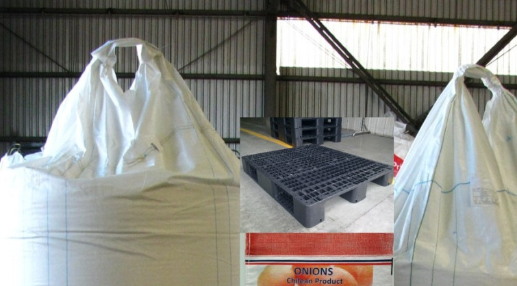 Maxisacos ventilados para exportación de nuez, frutos secos, avellanas, papas y cebollas, con tela ventilada o malla mosquito para leña y otros productos.
